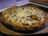 | The Bake | The bake is almost an anticlimax to the whole process. It only bakes for 8-10 minutes and it's done. Wonderful, let's eat. But, before I close this section I have another bit of advice. I only bake based on time when I'm testing a new cheese blend. Each cheese blend melts and starts to brown at its own rate. If I'm familiar with the cheese blend, I base the bake time solely on the appearance of the cheese. If you bake a few pies you will see what I mean. | ![]() |